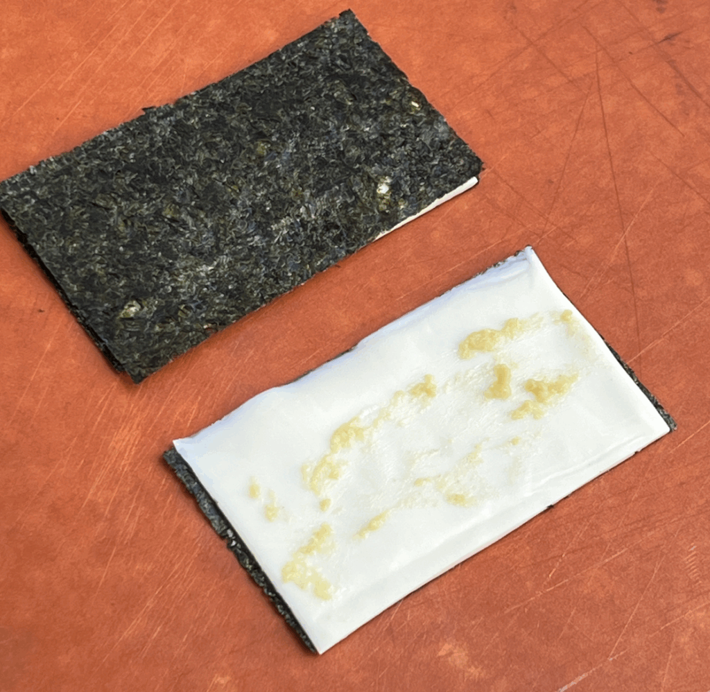 おつまみに、海苔わさびチーズ(チーズにわさびを塗って海苔に挟んだだけのおつまみ)を食べつつ、日本酒を飲み比べる。この2本、それぞれ全然違う味で楽しい。