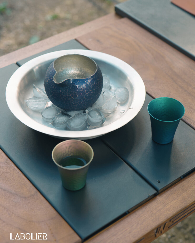 新しく増やした酒器の片口を氷に浮かべて、飲んでいく。夏キャンプに冷酒を飲むのに、これは必須。