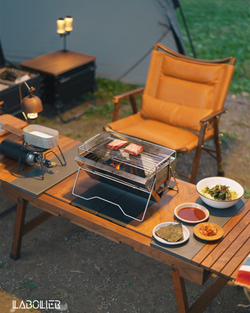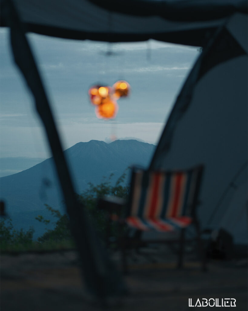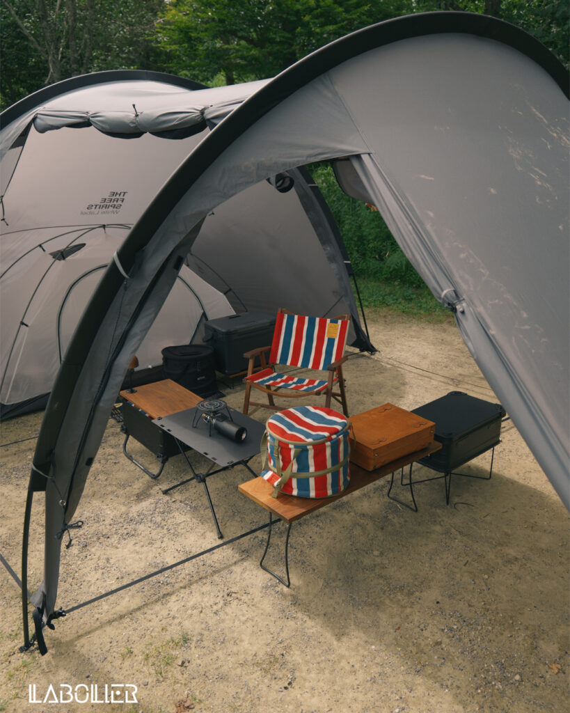 テントは昨日と同じ構成。ただ、2泊目で少しサボろうと思い、テーブルは減らした。