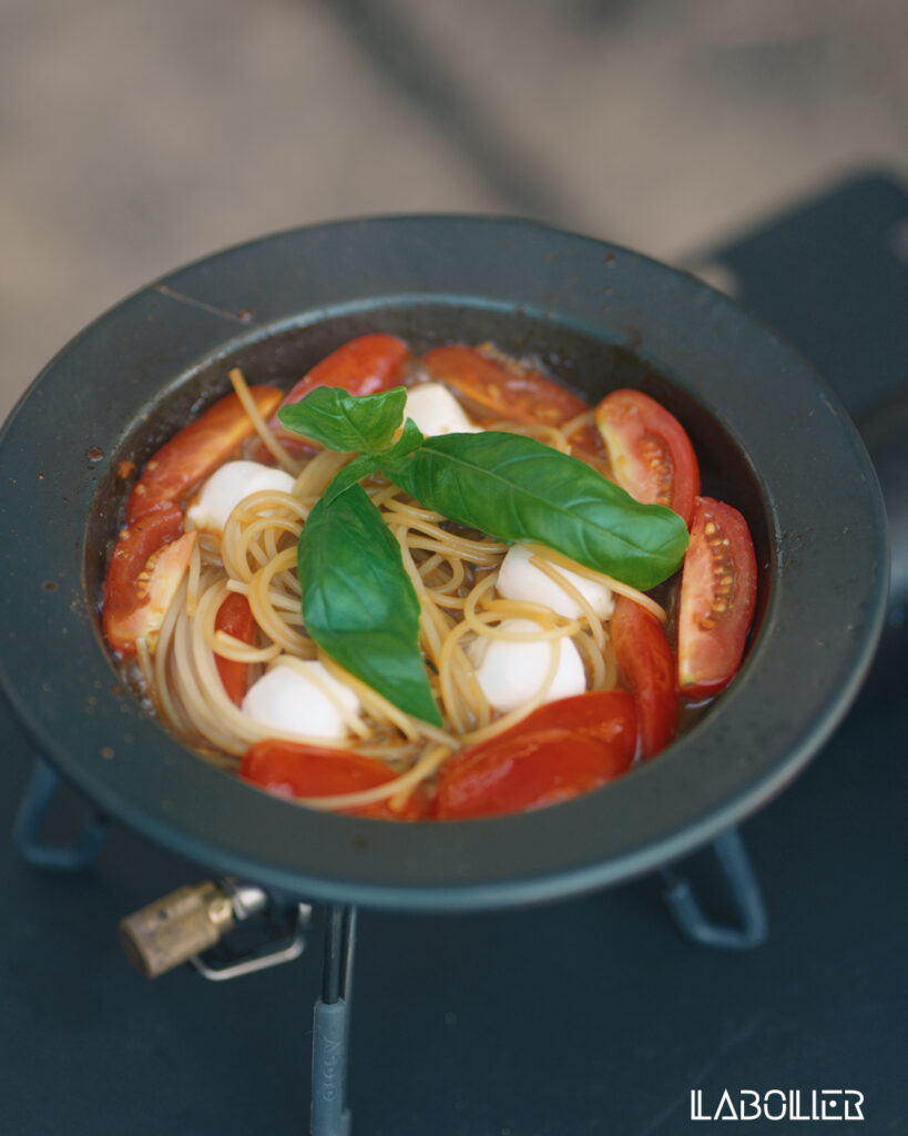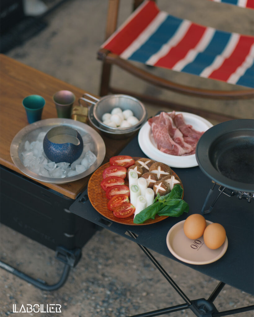 今夜の料理は、ソロキャンプでルーティンとなっている、すき焼き。夏ということでトマトを入れ、トマトすき焼きにする。