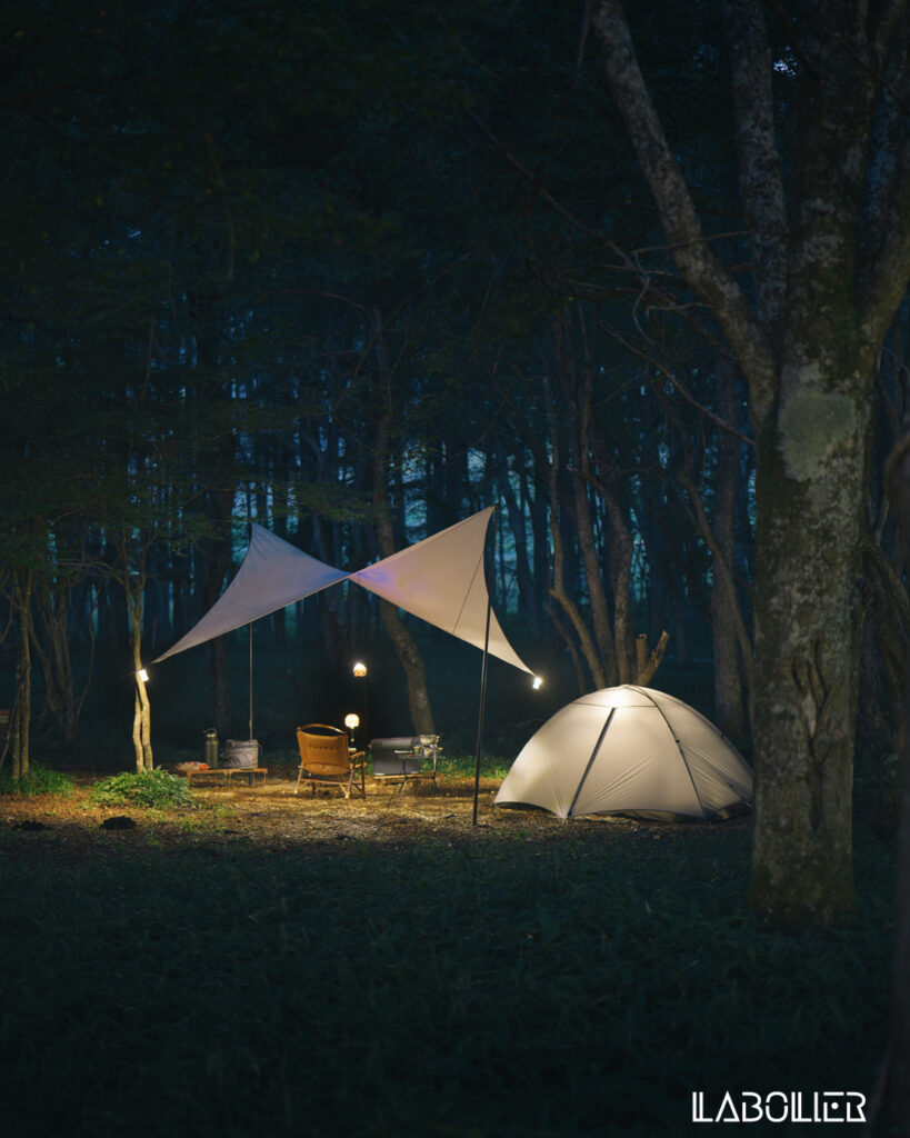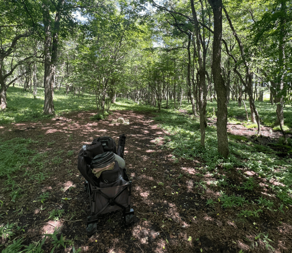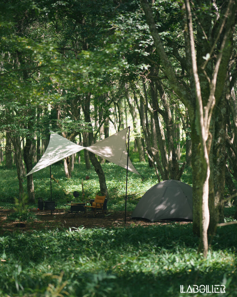 こちらに、タープとテントを立てる。今回は、Telo looksと、ZANEARTSのYAR-2だ。
