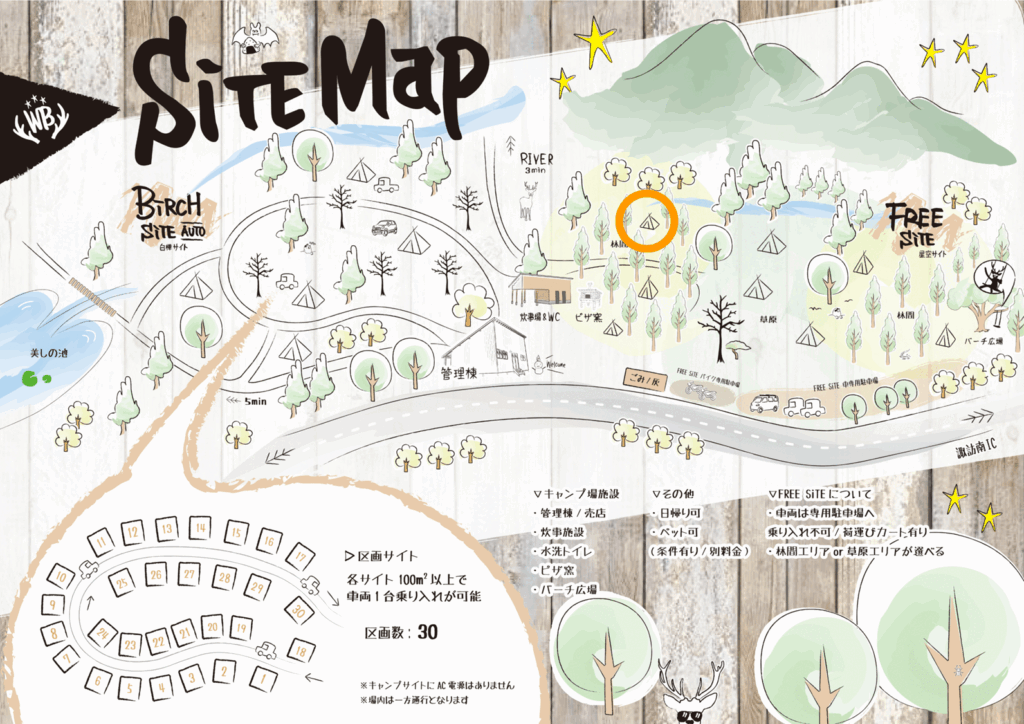 このキャンプ場では、「区画サイト」と「フリーサイト」がある。