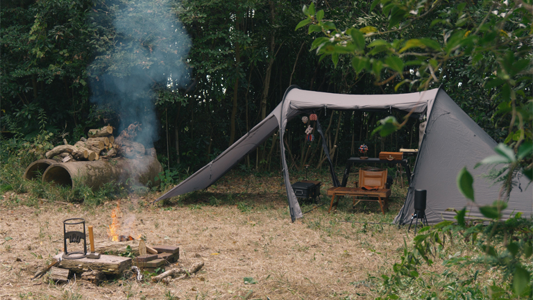 今回のテントは、THE FREE SPIRITSの「Yoto plus」。ここでは初張りだ。