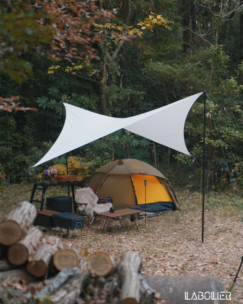 本日の開拓作業はここまでにし、タープを張り、テントをたてた。