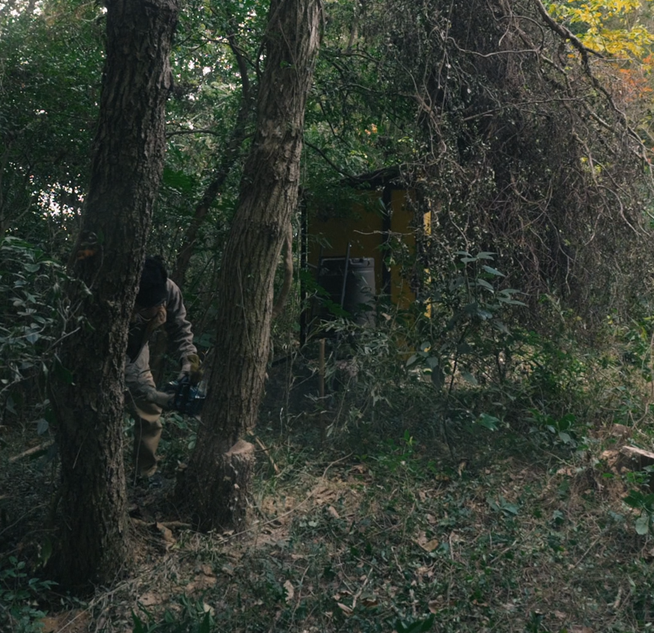 大きな木の幹だけでなく、その枝や、枝に絡みつくツルも、なかなか移動させることが難しい。