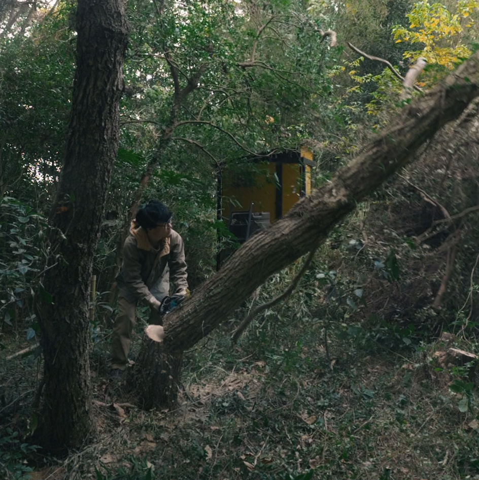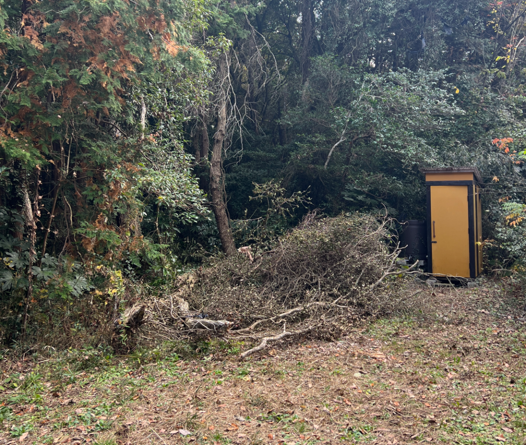 今回は、トイレとは違う方向に、木を倒したい。
