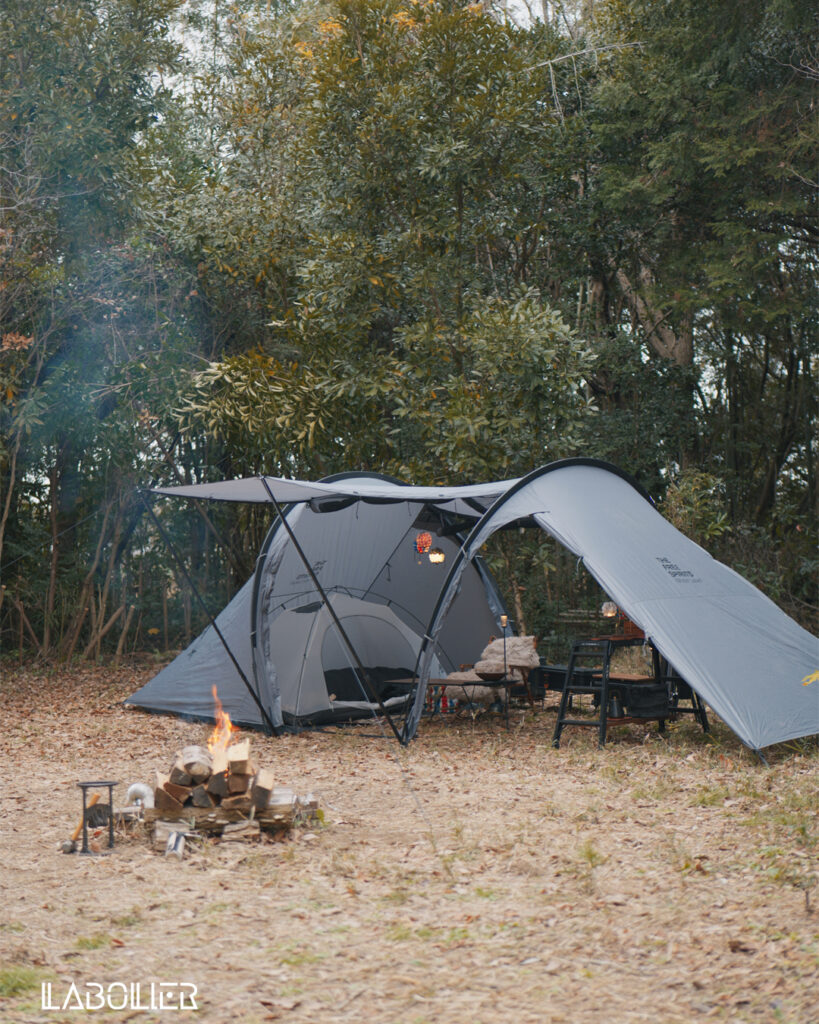 さて、今日のテントを立て直そう。Yoto plusを立てて、設営していく。
