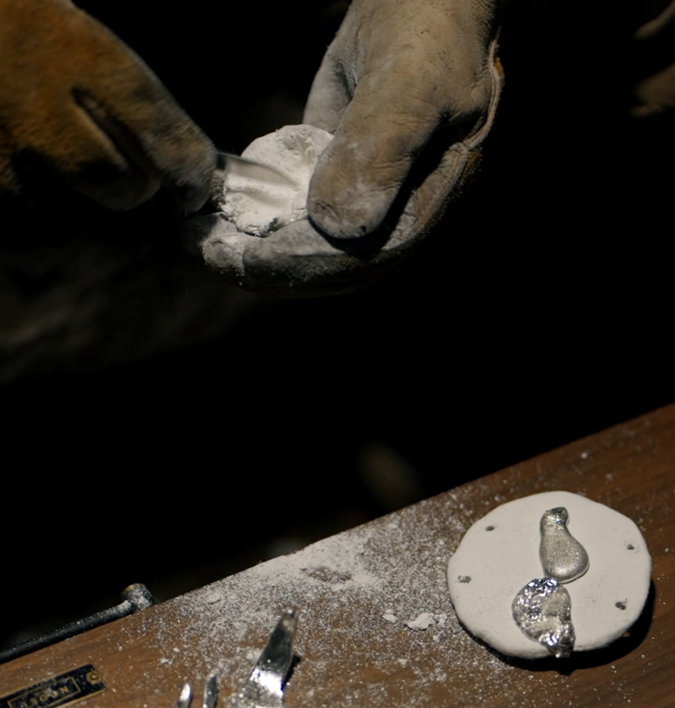 その鍋から、錫を型に流し込んでいく。この時、中がどうなっているかわからないのが、ツライ。