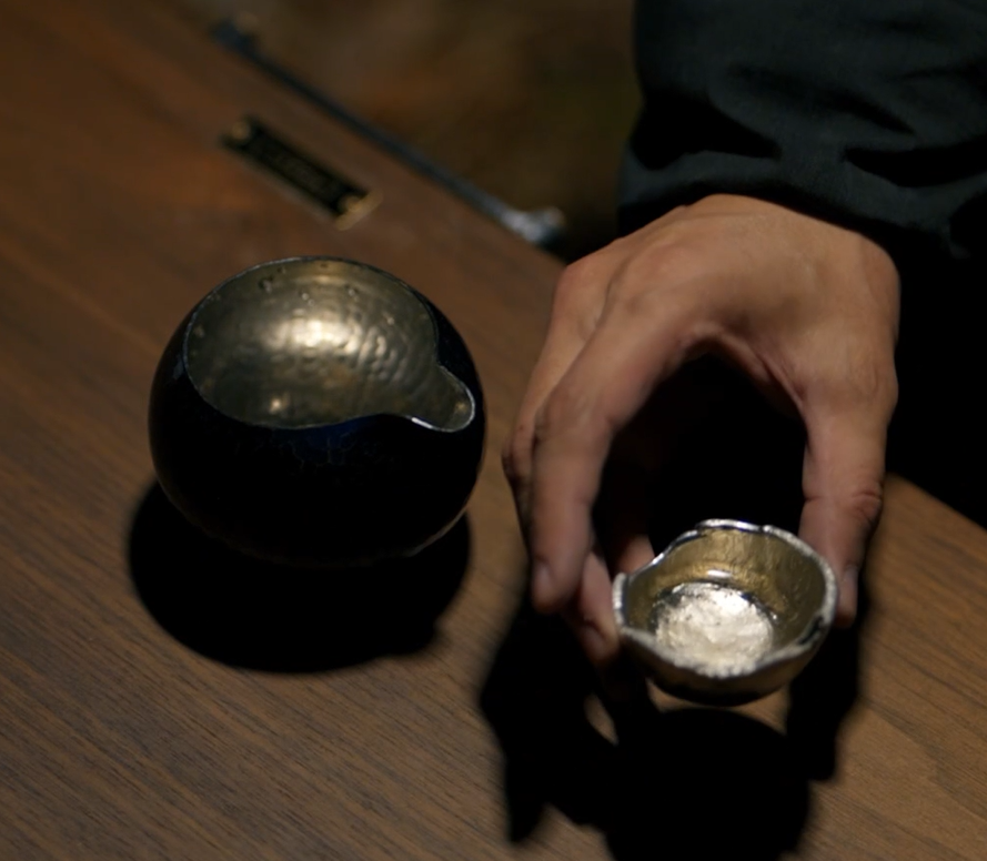 さて、錫の器がどうなっているか楽しみにしつつ、日本酒を開ける。