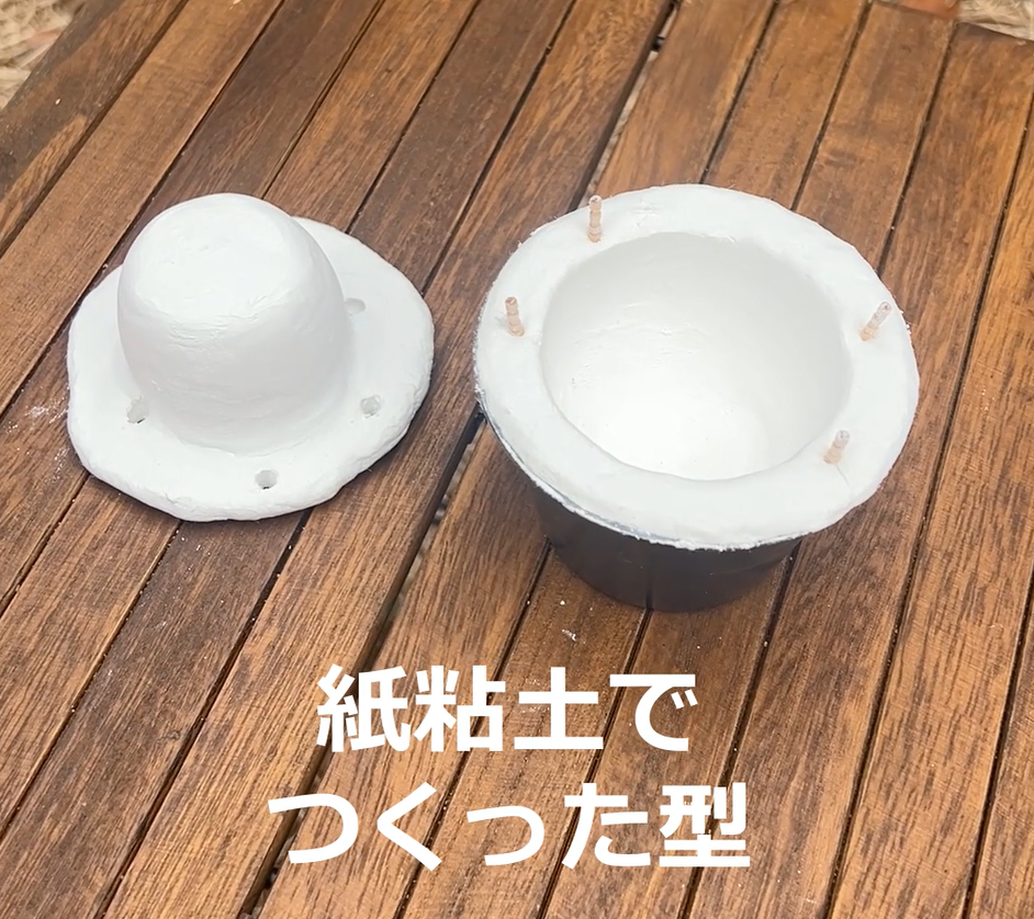 まず、型は、紙粘土を使って自宅でつくってきた。この細かい作業は、キャンプ場だと難しい。