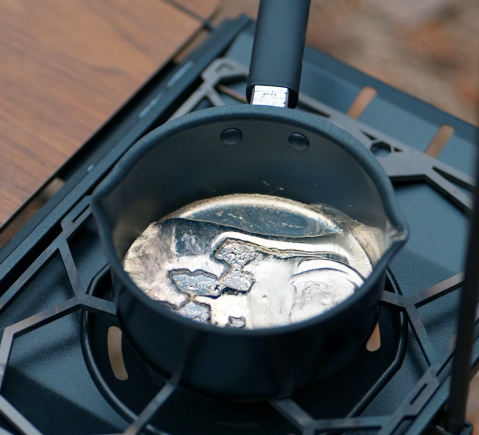 まだ明るいうちに、錫の器をつくろう。以前のキャンプで挑戦し、盛大に失敗してしまった錫の器づくり。2025年のうちに、リベンジしておきたい。