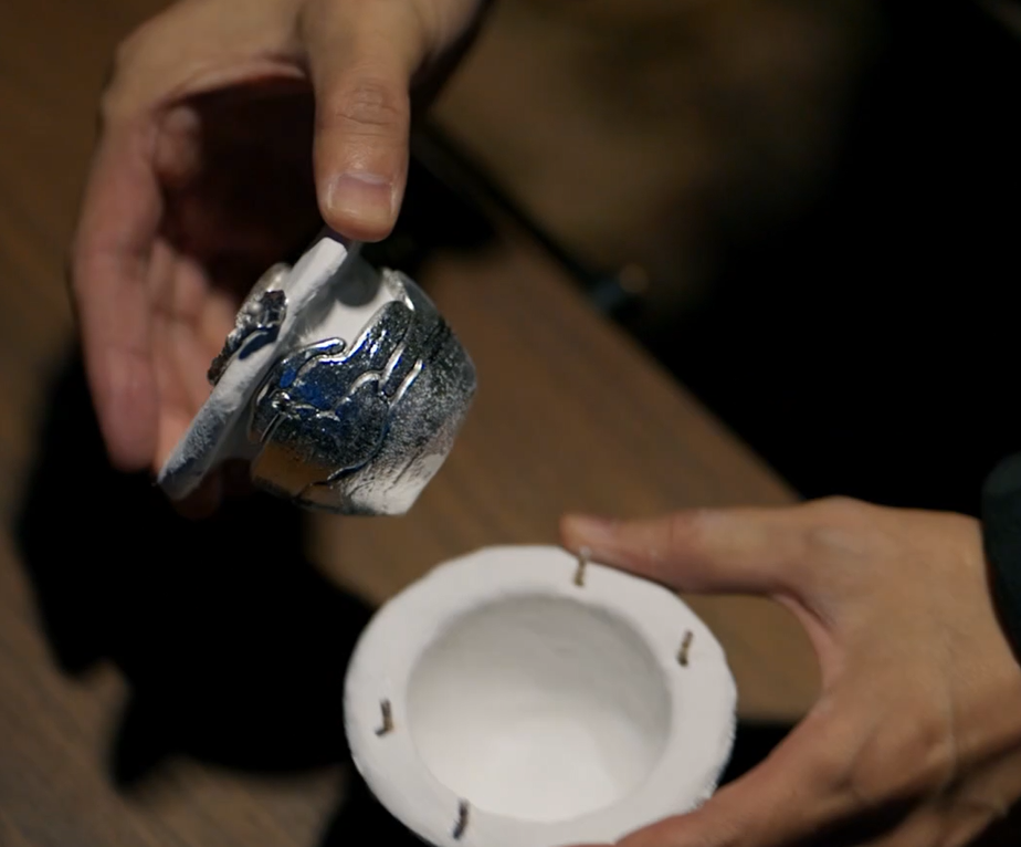 そろそろ、型も冷えてきたころ。この器ができたら、これで日本酒を飲もう。
