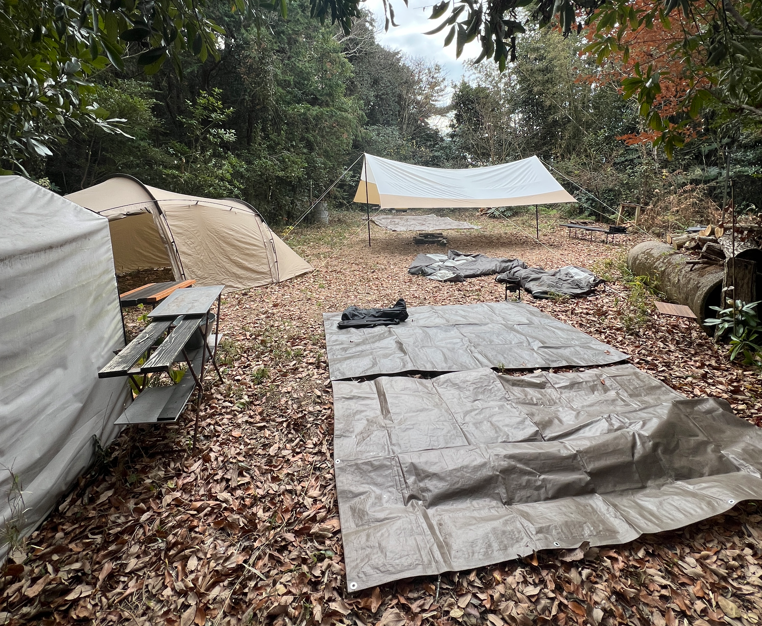 そして、薪を調達し、キャンプ場へ戻ったころには、シート類も全て乾燥していた。