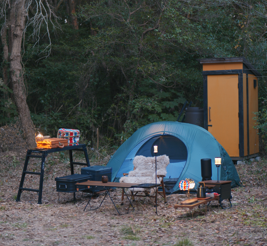 現地に着いて、まずは撮影開始。今回は、2投稿してほしいとのことで、動画と写真の2種類撮ることに。そのテントを設営しながら動画撮影。設営後にレイアウト整えて写真撮影。