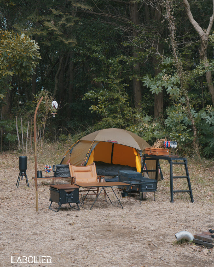 キャンプ場に戻って設営をスタート。ゆっくりしたいところだが、ランチを食べたいし、陽が暮れるまでには落ち着きたいので、急いで設営する。1時間ほどで完了。