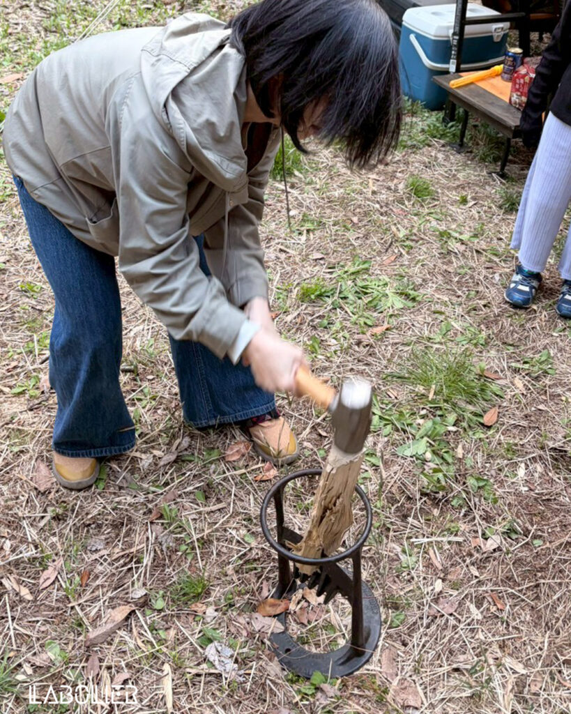 暗くなる前に、早めに焚火を点ける。子どもや女性陣に薪割をしてもらい、点火。