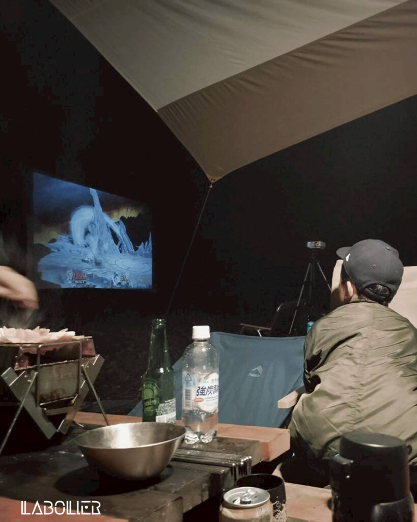 あたりも真っ暗になって、おなかいっぱいになった子どもたちは、プロジェクターでゲームを楽しみはじめている。
