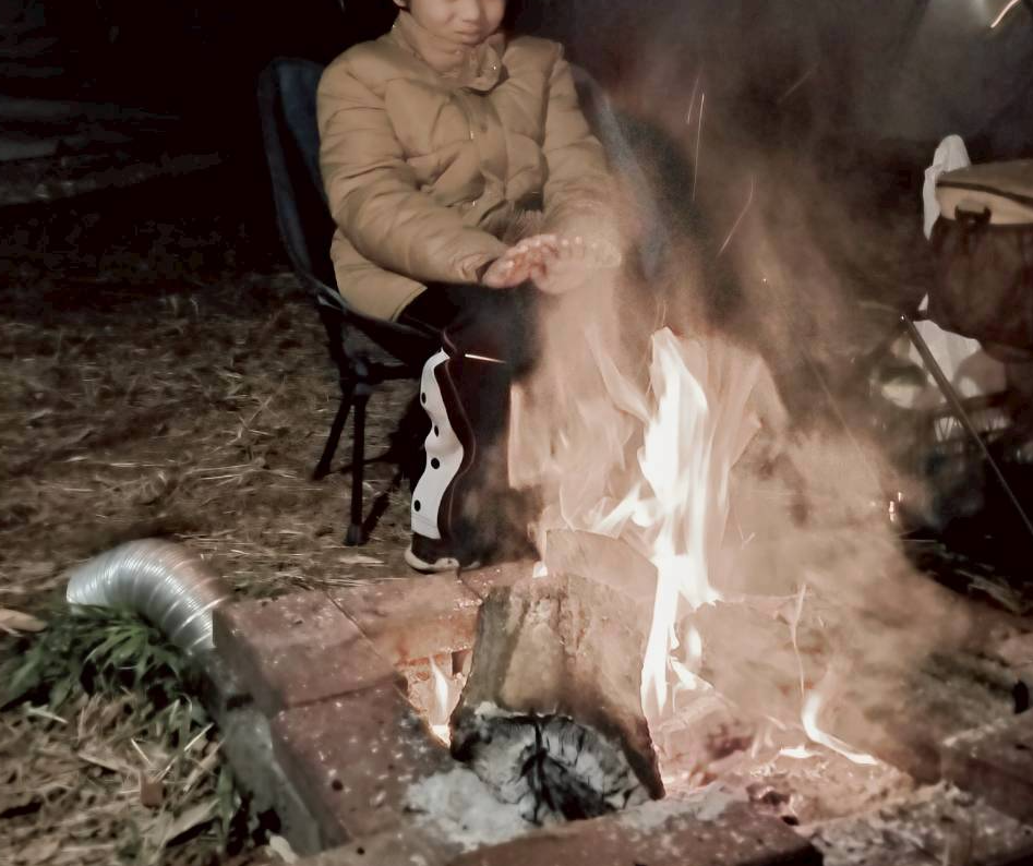 春に差し掛かったとはいえ、夜には気温が下がる季節なので、焚火で暖をとろう。